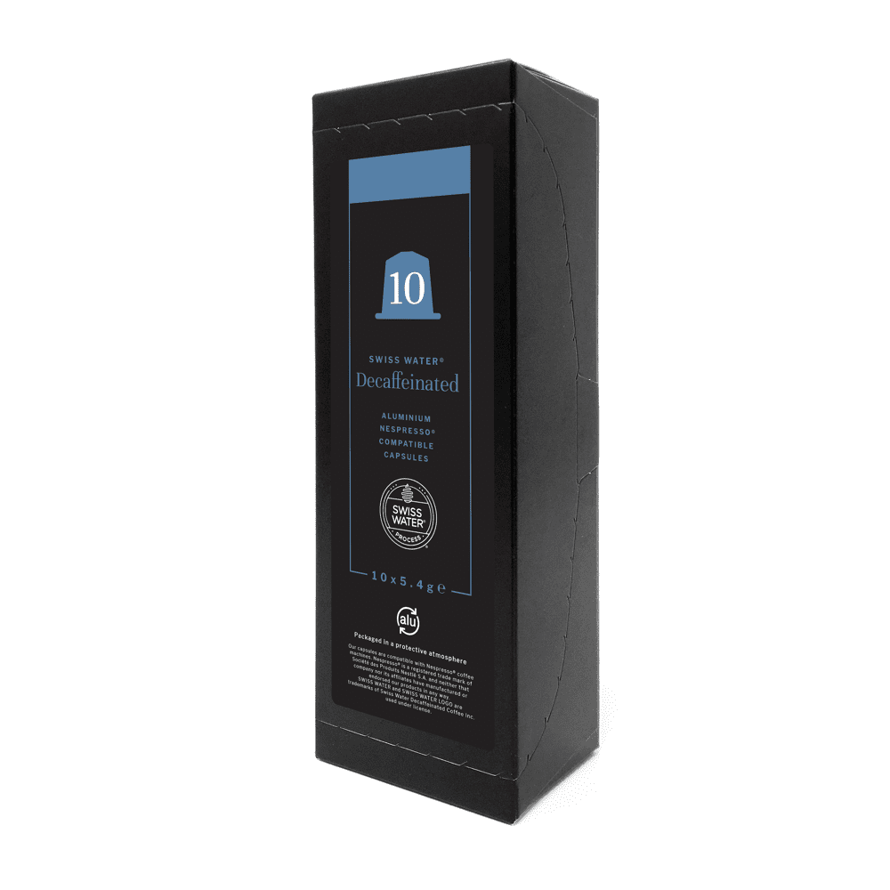 These Decaffeinated Coffee Pods, a blend of Brazillian, Peruvian and Vietnamese Coffee, are decaffeinated using the Swiss Water Process. This involves hot water being used to extra both flavour and caffeine levels in coffee molecules from the beans.