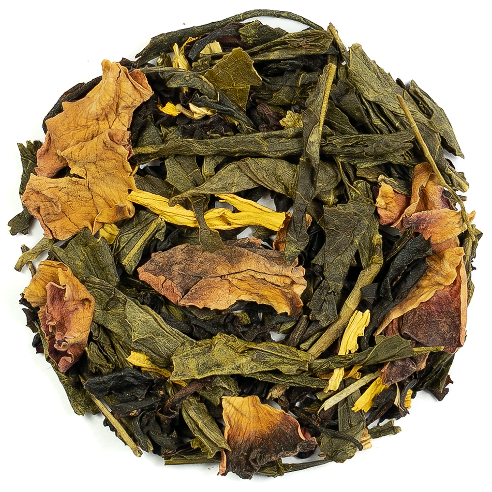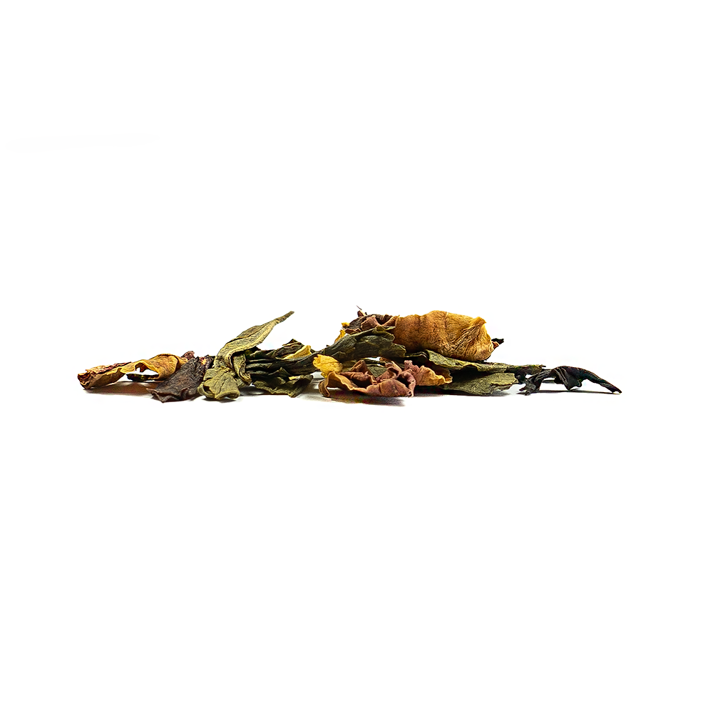 Emperor’s Seven Treasures Tea. From the beginning of time the number Seven has been the numeric symbol for perfection and harmony. This blend of Green Teas and Black Teas is scented and blended with some wonderful natural ingredients. The result is a fruity masterpiece worthy of an Emperor! Ingredients: Black Tea Green Tea Natural flavouring Rose blossoms and Sunflower blossoms.