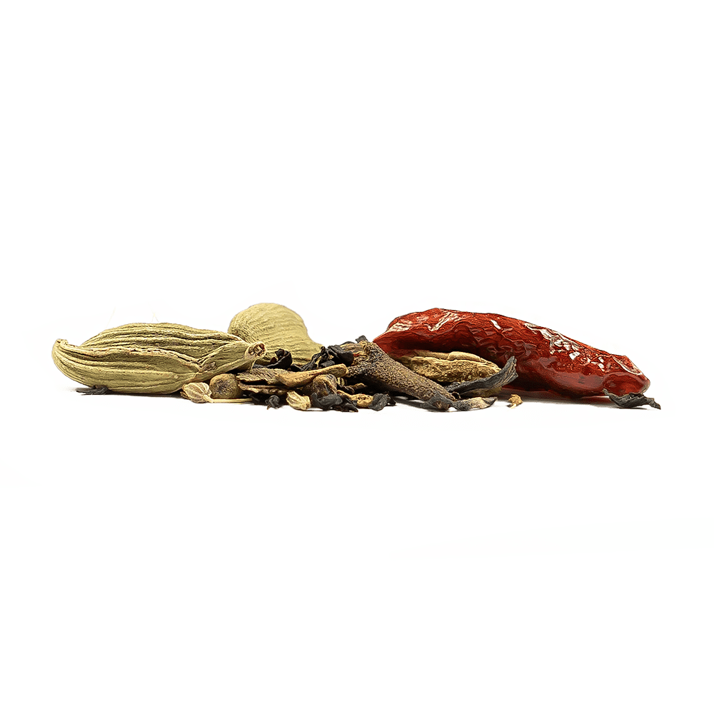 When brewed, expect a bold, balanced and brilliant spicy note. This is the product of Cinnamon, Turmeric Slices, Ginger Pieces, Aniseed, Black Pepper, Cloves, Cardamom and Chilli.